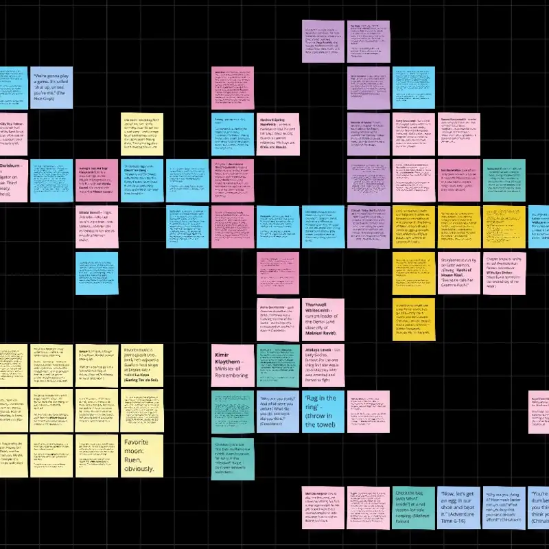 Outlining Chase Two Rabbits with virtual post it notes. With numerous references to The Big Sleep.